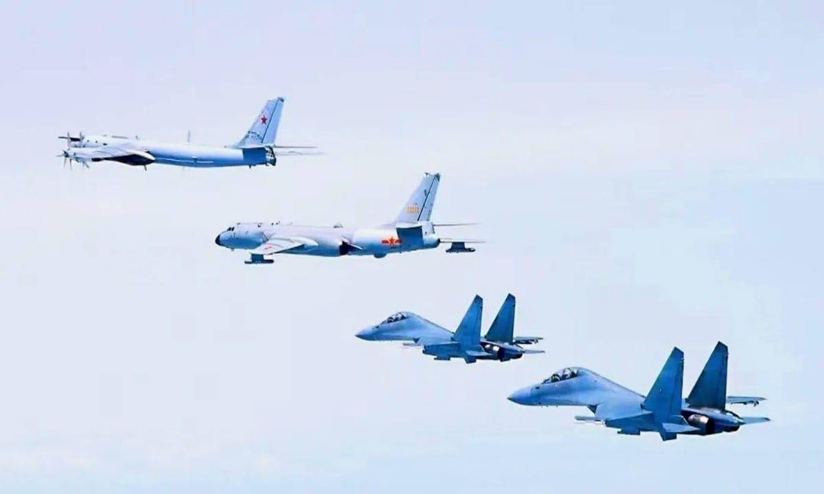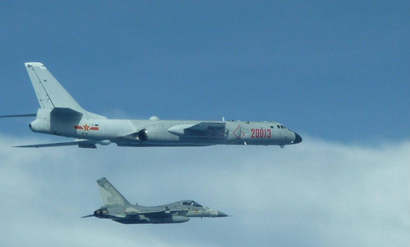 解放军歼-16战斗机藏身轰-6K,吓台军一跳