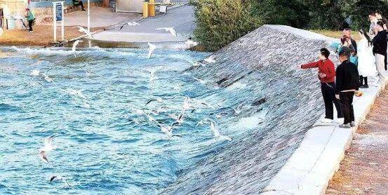 南阳淅川宋岗码头,依偎着丹江口水库的清澈碧水,是南水北调源头处的“鸥鸟秘境”。每到冬天,成群红嘴鸥如约而至,站在码头延伸台投食,瞬间就能被漫天白羽红喙的精灵环绕。乘游船游湖,看鸥群追着船尾盘旋,水天一色间满是冬日的浪漫活力。