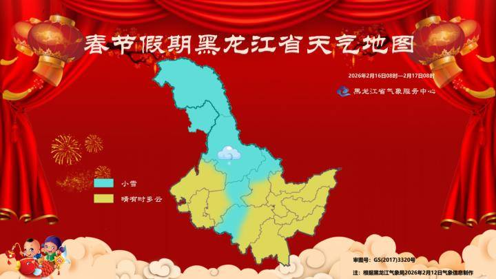 2月16日(除夕):大兴安岭、黑河、伊春北部、绥化北部、哈尔滨西部有小雪,其他地区晴有时多云。
