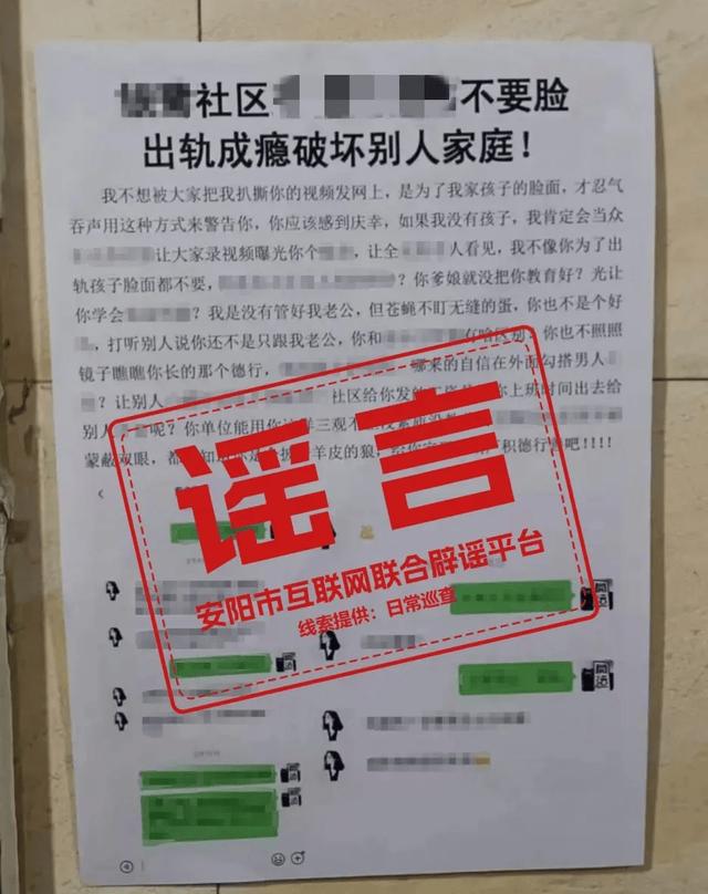 1月17日,安阳市网信部门在日常巡查中发现,微博账号“列宁”发布“某社区刘某某破坏别人家庭”相关信息,被多家媒体转发,引起网民关注。经安阳市网信部门、公安部门联合调查,申某某、杨某某故意捏造不实信息,对社区人员刘某某进行造谣诽谤,该信息系不实信息。目前,相关信息已删除,当地公安部门已依法对申某某、杨某某予以行政拘留处罚。