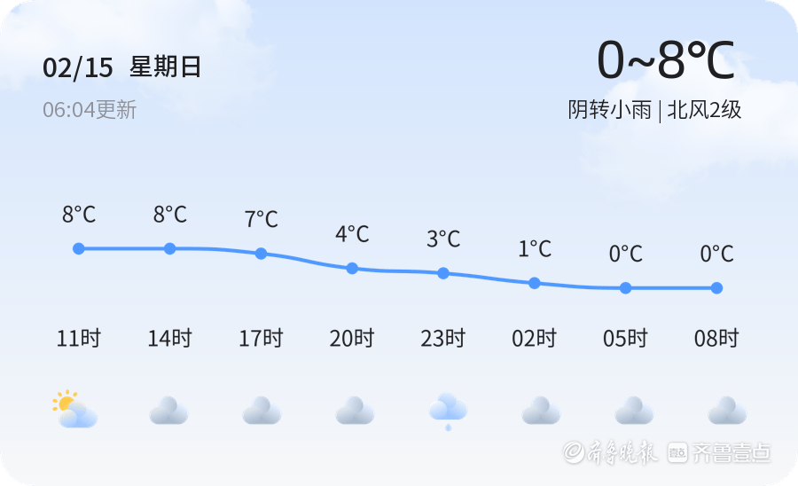 今日是2月15日,农历十二月廿八,济宁市迎来阴雨天气,气温介于0℃至8℃之间,北风2级,空气湿度为57%,PM2.5指数为139,空气质量为中度污染。今日阴转小雨,能见度较低,路面湿滑,市民出行请注意交通安全,建议减少户外活动,特别是敏感人群应避免长时间暴露在空气中。