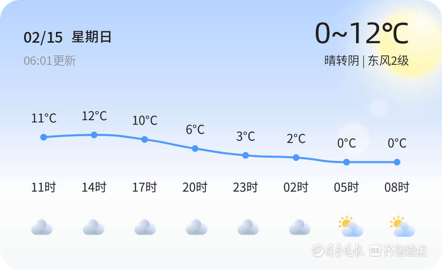 今天是2月15日,星期日,农历十二月廿八。枣庄市今日天气为晴转阴,气温范围在0℃至12℃之间,东风2级,空气湿度为67%。当前空气质量状况为轻度污染(PM2.5值117),建议市民减少户外活动,尤其是敏感人群。市民出行时请注意保暖,随身携带雨具,以应对天气变化。此外,由于风力较小,早晨和傍晚时段可能出现雾气,驾车时请保持车距,注意行车安全。