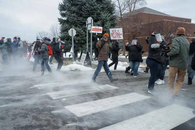 当地时间2026年1月11日,美国明尼苏达州明尼阿波利斯,抗议者在示威活动中躲避弹药。(图源:视觉中国)