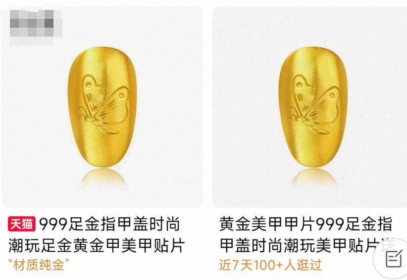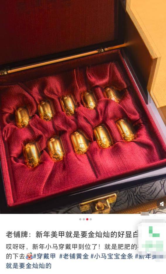为了追求极致效果,甚至有网友将老铺黄金的“生肖金条”系列(重量可高达10克)搬上指甲。
