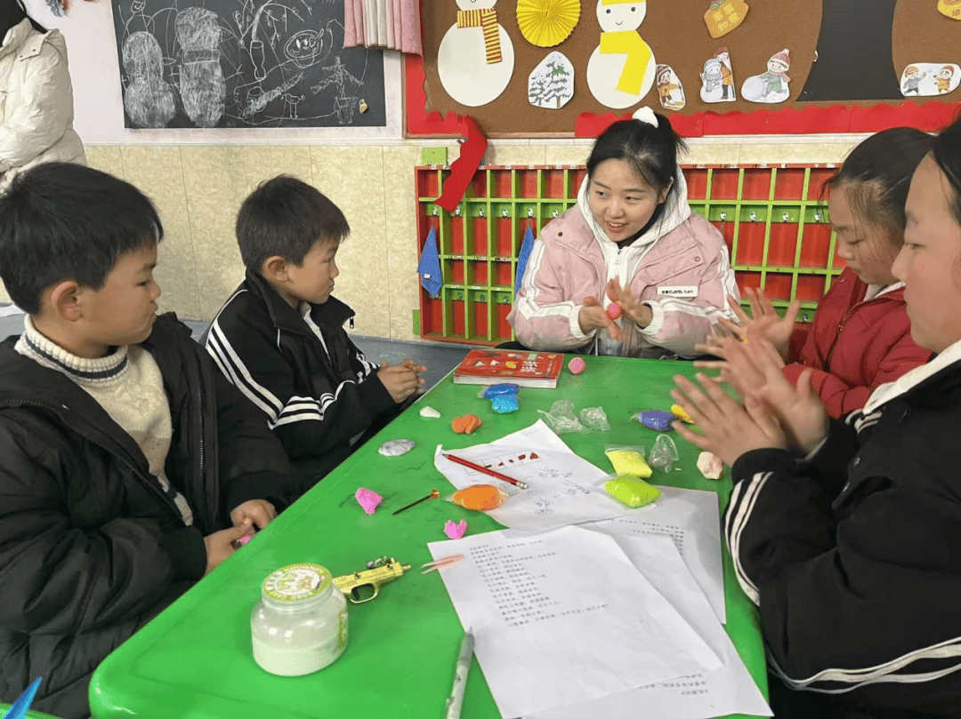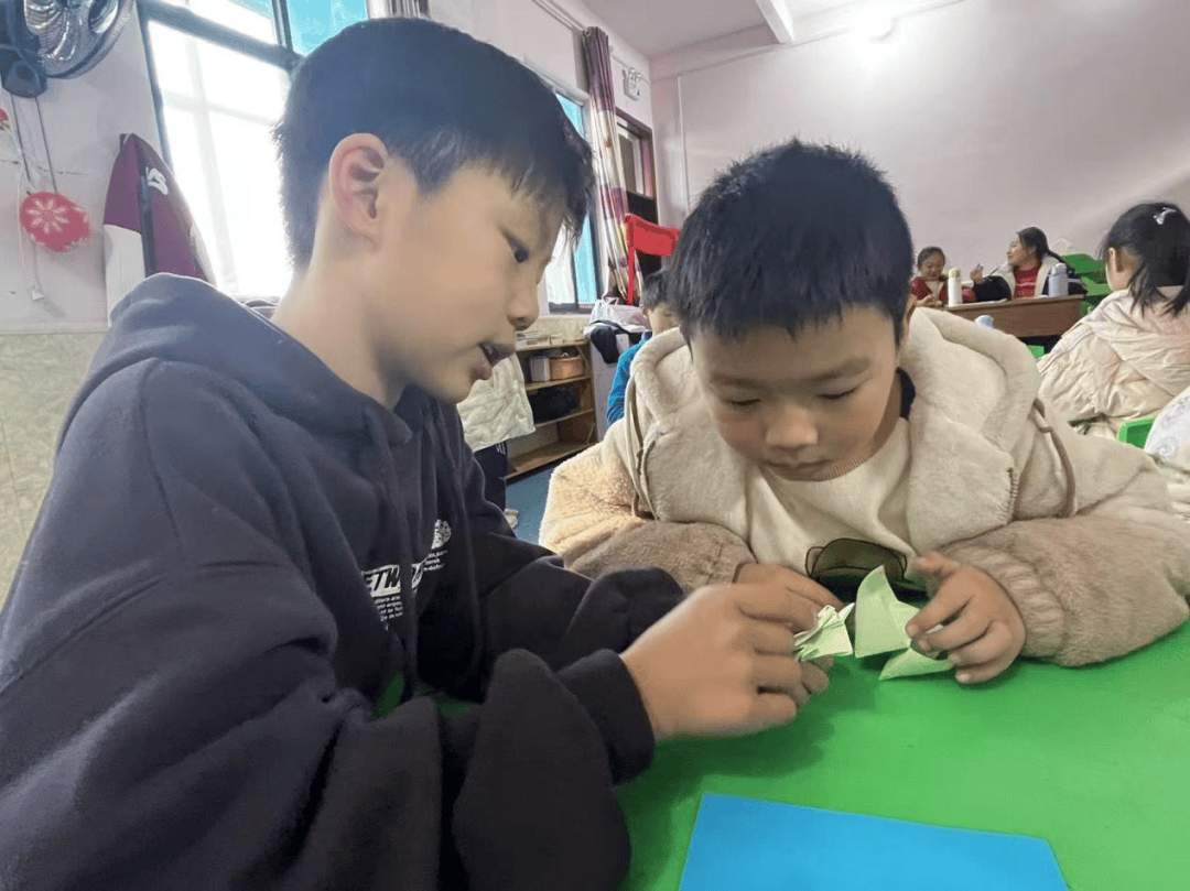 在“艺术素养”主题课堂上,志愿者为孩子们发放黏土,耐心指导孩子们用揉、捏、搓、压、粘等手法,将脑海里的奇思妙想,变成可爱的小动物、精致的小摆件、趣味的卡通形象;还为孩子们讲解折纸技巧,带领孩子们解锁飞鸟、花朵、小船、小动物等多种造型。在创作过程中,不仅锻炼了孩子们的动手能力,培养了他们的耐心与专注力,更提高了他们的空间创造力。