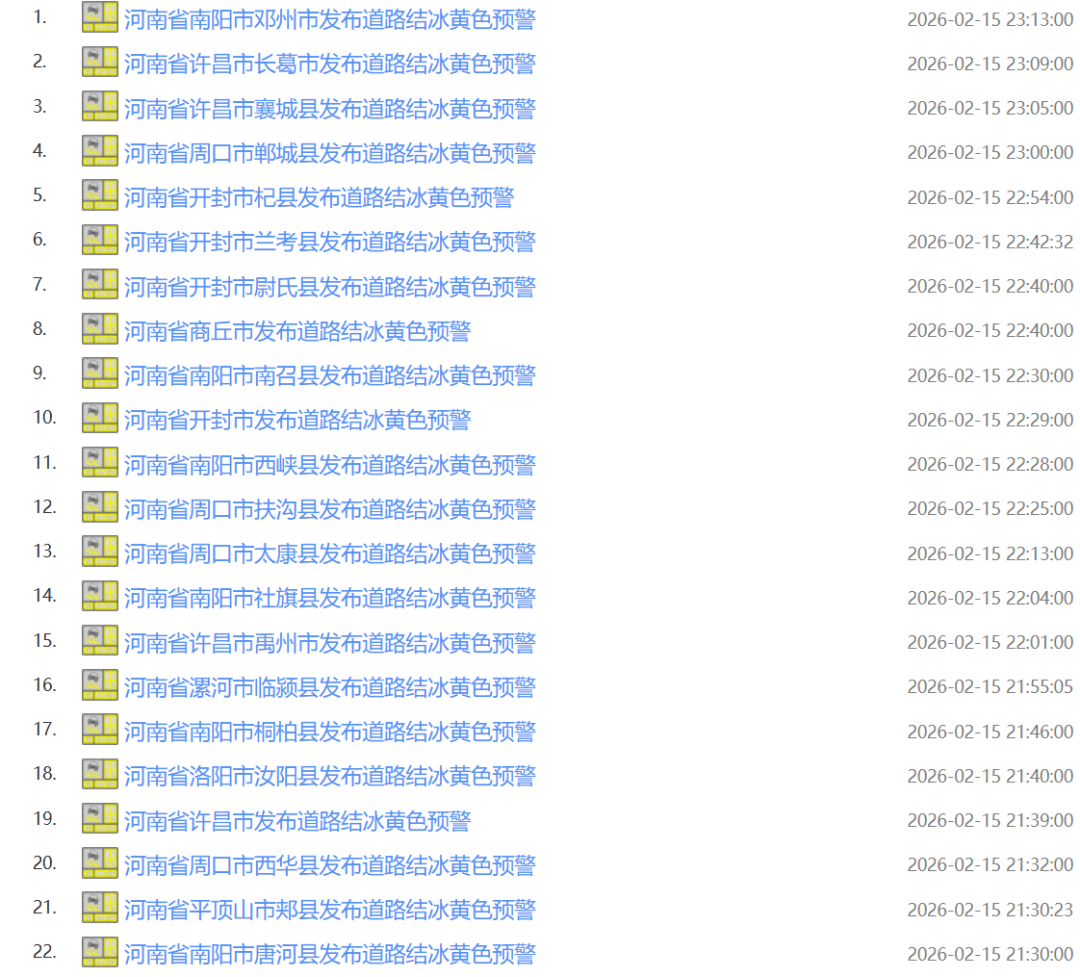 河南多地发布道路结冰黄色预警: