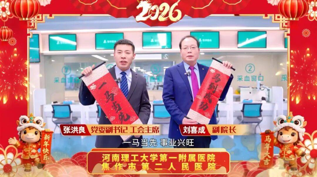 值此2026丙午马年新春来临之际,河南理工大学第一附属医院、焦作市第二人民医院恭祝大家,新春快乐,阖家幸福,龙马精神,马到安康!