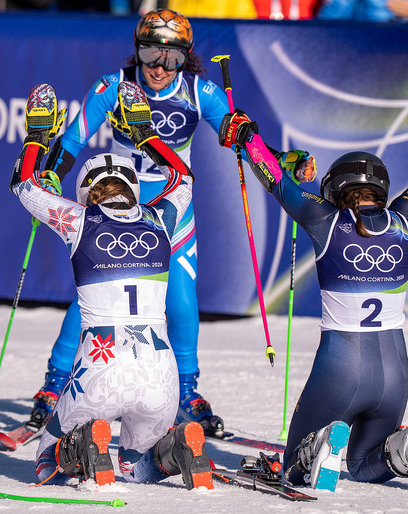 北京时间2月15日晚,米兰冬奥会高山滑雪女子大回转项目落下帷幕,绰号“雪地之虎”的35岁意大利选手费代丽卡-布里尼奥内夺得金牌。赛后,并列获得银牌的挪威选手西娅-路易丝-斯蒂尔内松德和瑞典选手萨拉-赫克托激动地向布里尼奥内顶礼膜拜。