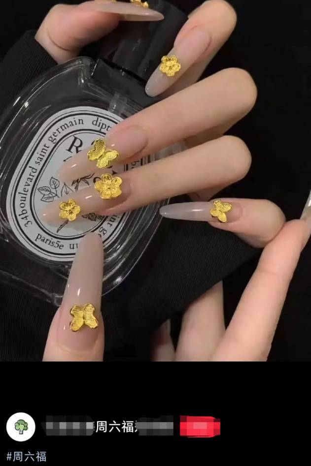 周大福等头部品牌的小件金饰,甚至老铺黄金的金条都成了美甲店的“高端原料”,有消费者表示,愿意花数千元、上万元打造“黄金甲”。