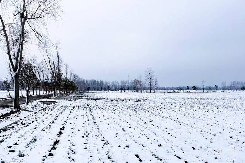 河南南阳迎来降雪天气,田野间白雪覆盖(央广网发 张旭 摄)
