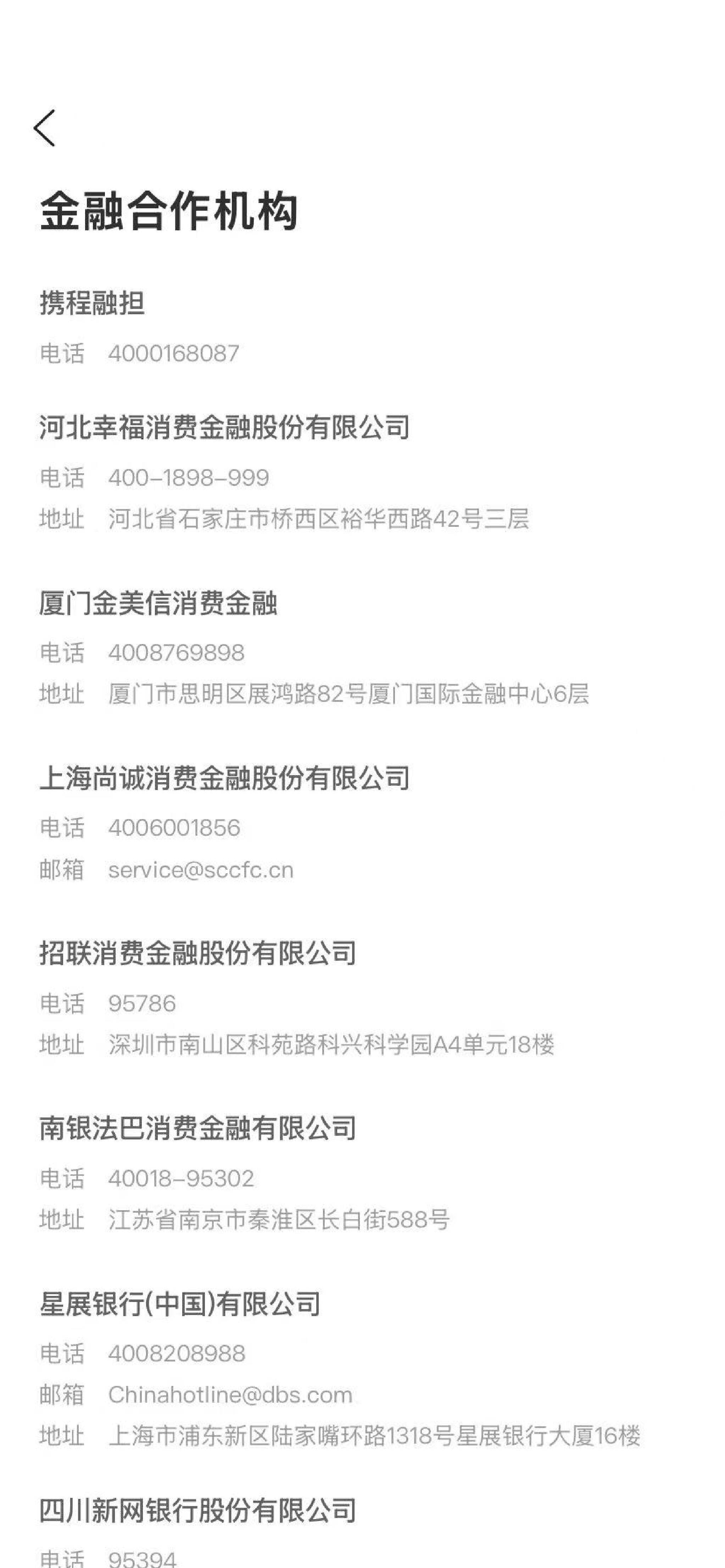 值得注意的是,被约谈企业在金融业务布局上存在结构性差异。以携程为例,自2011年取得保险代理牌照以来,目前已获得商业保理、网络小贷、融资担保、第三方支付等多项金融业务资质,并在香港、新加坡等地开展境外金融牌照布局。其金融业务涵盖保险销售、个人及企业贷款、贷款超市、车主贷、联名信用卡、数字人民币等。其中,分期产品“拿去花”由其全资控股的重庆携程小额贷款有限公司与中诚信托联合运营,页面展示的合作资金方包括河北幸福消费金融、厦门金美信消费金融、上海尚诚消费金融、南银法巴消费金融、马上消费金融、小米消费金融、百信银行等持牌机构。