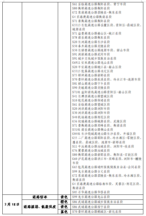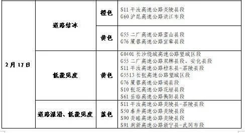 关注雨(雪)、低能见度天气对交通运行安全的影响。