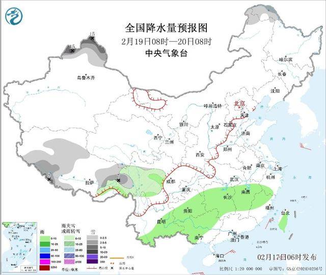 预计未来三天,我国大部地区天气晴好,气温开始回升。新疆北部和伊犁河谷、甘肃西部、内蒙古东北部、东北地区中北部有小到中雪或雨夹雪,局地有大到暴雪。西南地区东南部、江南、华南西部等地有小到中雨。