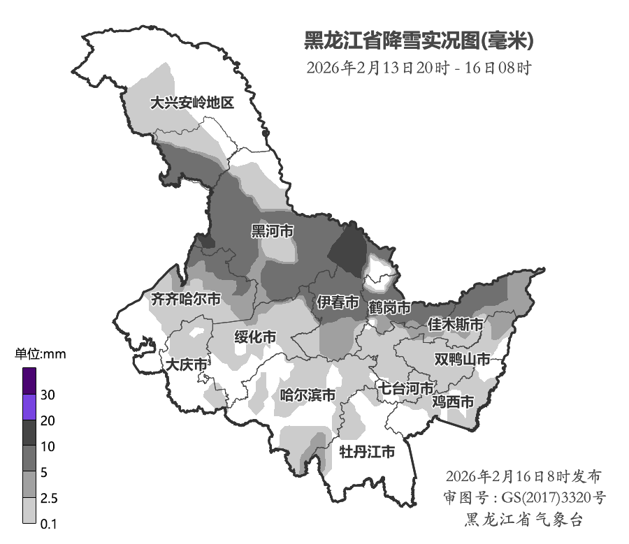 17日白天最高气温:大兴安岭、黑河、伊春-11~-9℃,其它地区-6~-4℃。