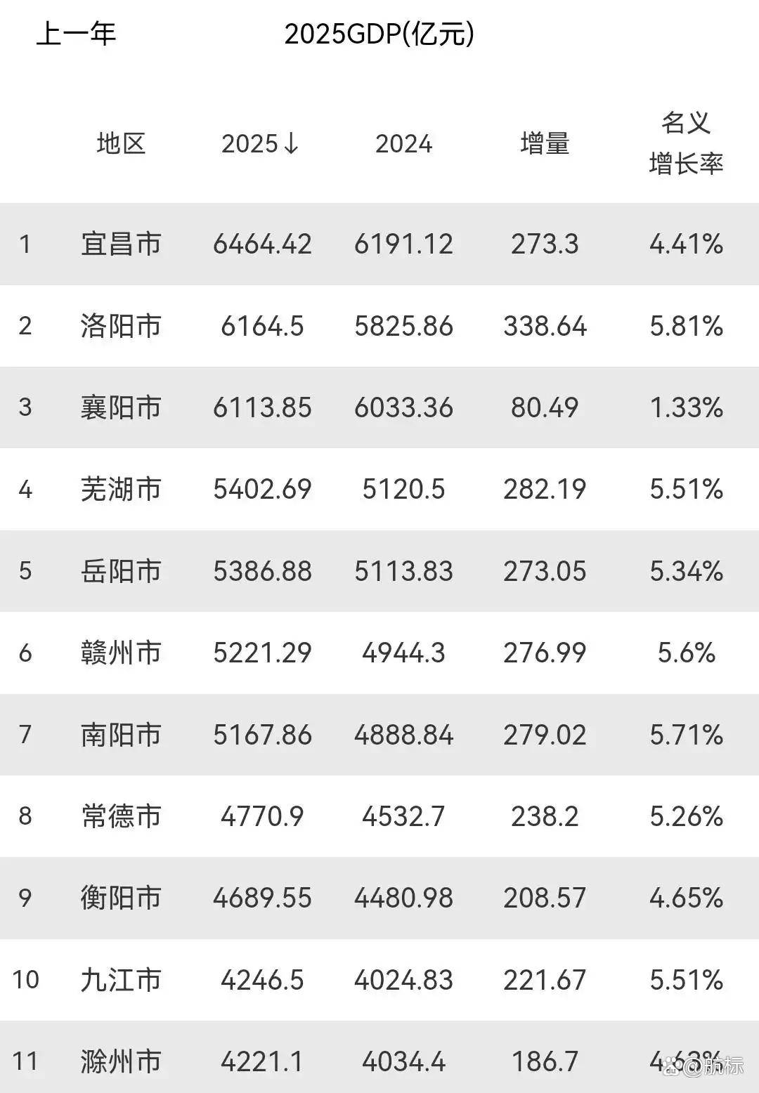 2025年中部地级市的经济竞赛,与其说是规模的比拼,不如说是转型速度的较量。最新的GDP榜单揭晓,宜昌依旧稳坐头把交椅,但第二名的争夺却风云突变——洛阳以其强劲的增长势头,将襄阳挤下宝座。与此同时,芜湖以5.51%的增速令人瞩目,南阳与赣州的差距也缩小至仅有53亿元,这背后隐藏着中部城市发展的深刻变革。