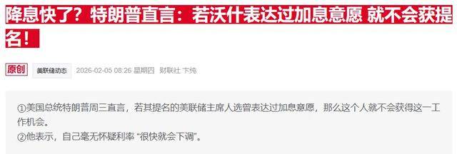 上月,特朗普宣布提名凯文·沃什为下任美联储主席,这一决定一度安抚了担心央行独立性受损的投资者,因为沃什被视为立场传统稳健的人选,而不是可能鲁莽降息的特朗普亲信。