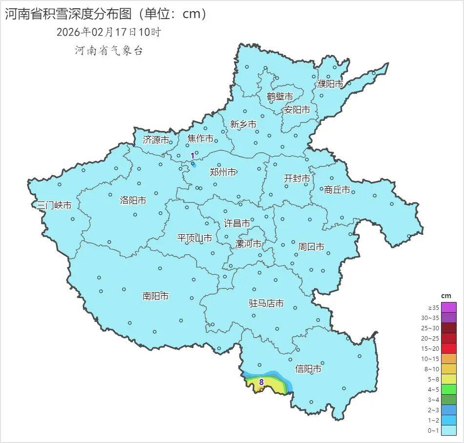 蛇年最后一场雨雪已经落幕,昨天7时到今天7时,西部、西南部部分地区出现小到中雪,中东部部分地区出现小雨,今天上午10时信阳西南部积雪还未融化,当地的朋友们外出时注意避开积雪路段。