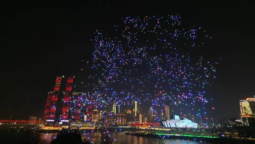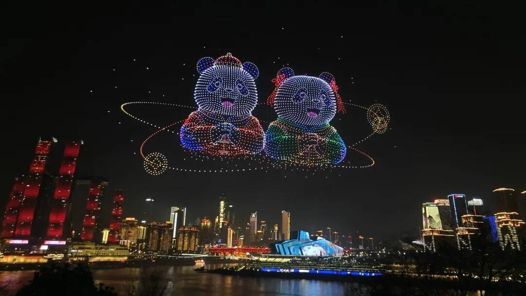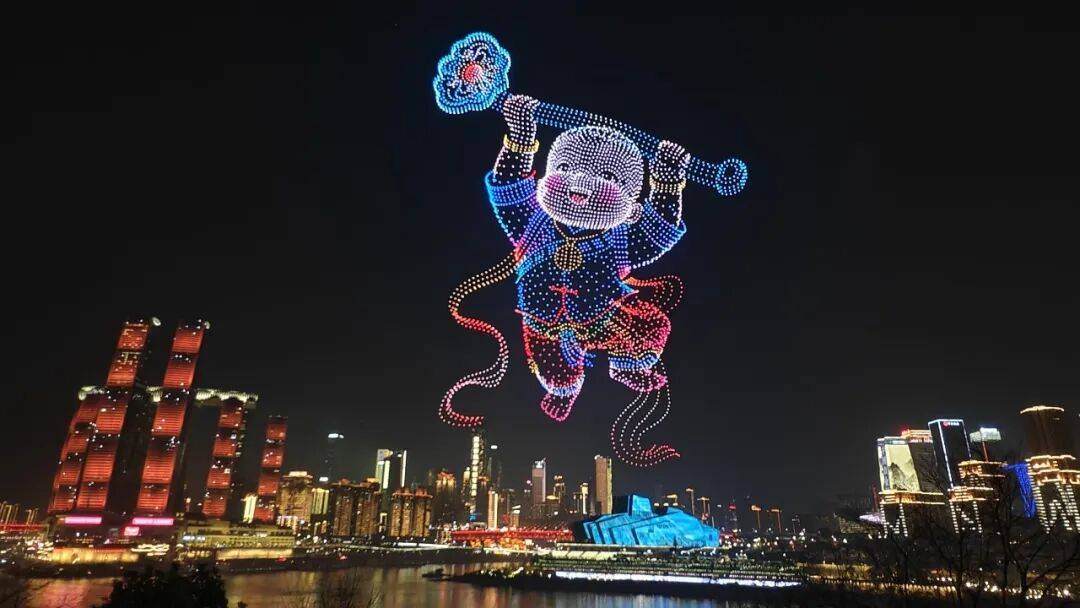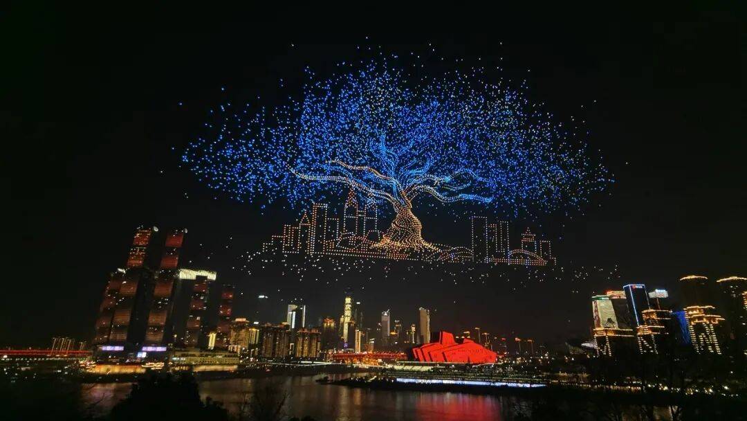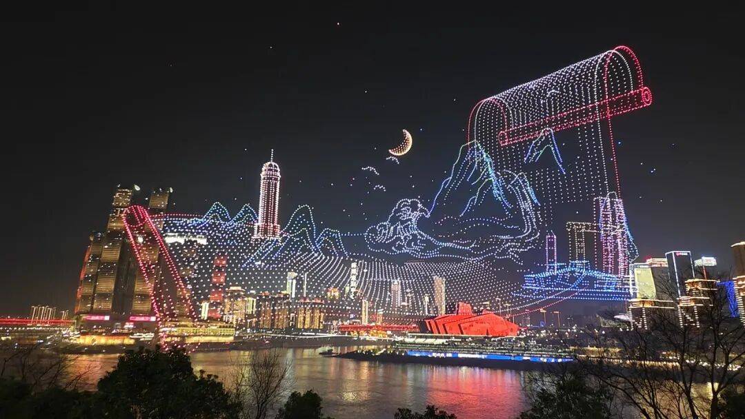 万架无人机化作巨型蜀绣于水面徐徐铺展
