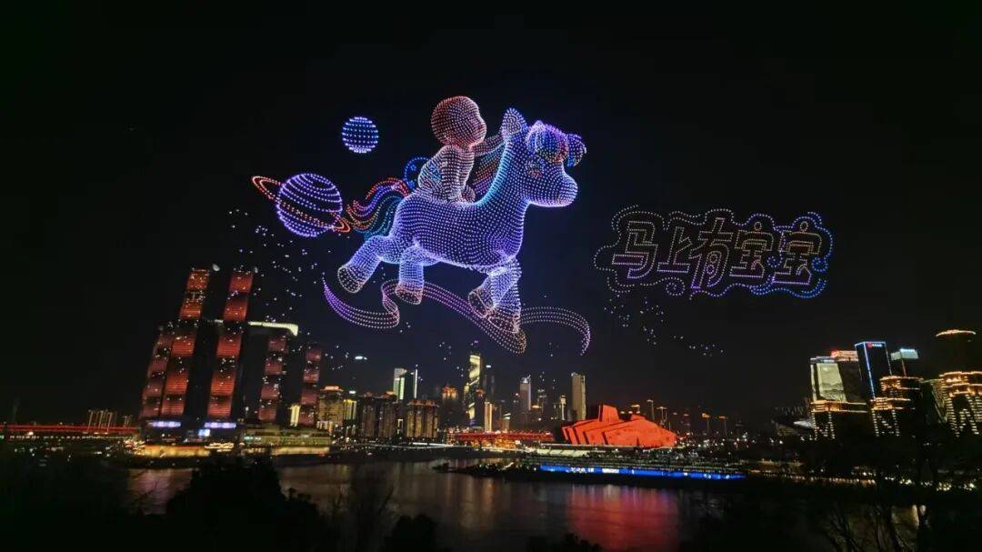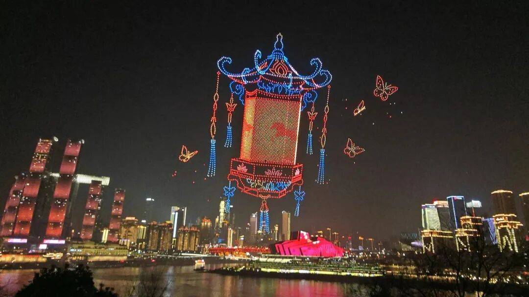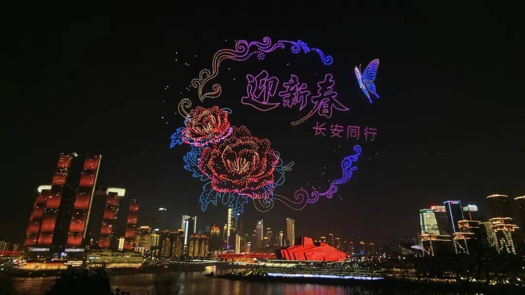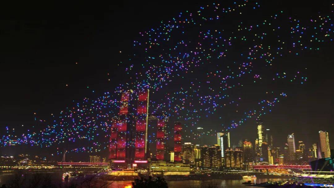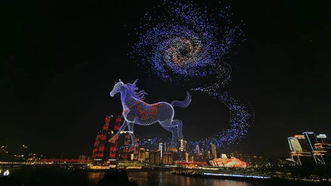 万架无人机化作巨型蜀绣于水面徐徐铺展