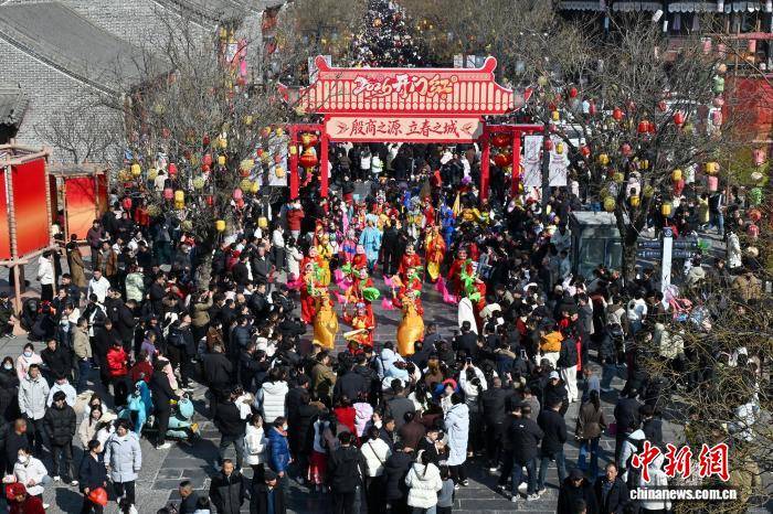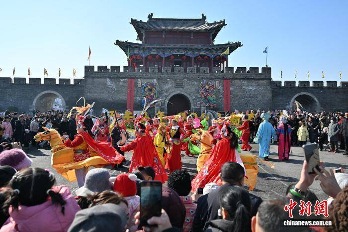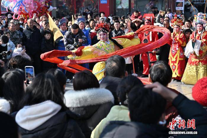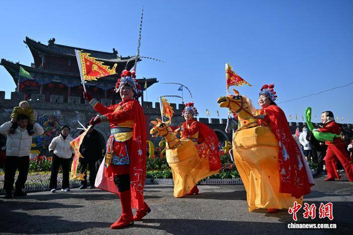 2月17日,丙午马年正月初一,河南商丘古城举办多彩民俗展演活动,吸引八方游客观看。 李恒 摄