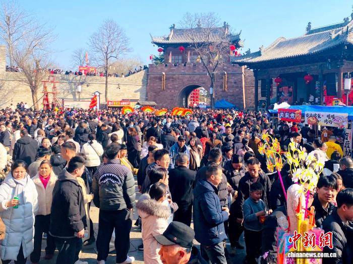 2月17日,农历正月初一,被誉为“微短剧之村”河南登封袁桥古村吸引众多游客前来打卡体验。据了解,自2024年以来,已有超过50部微短剧在此取景拍摄。图为民俗表演吸引游客围观。 刘杨迪 摄