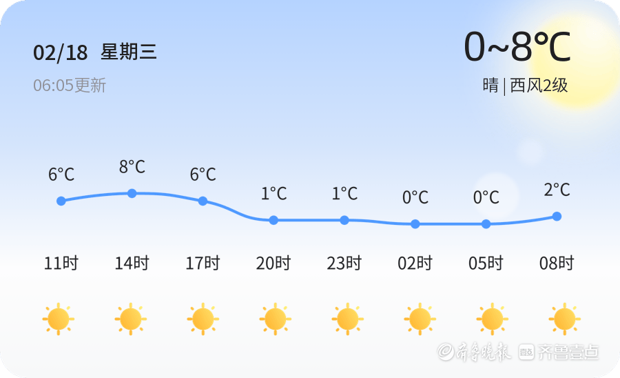 今天是2月18日,星期三,农历正月初二,潍坊市迎来雨水节气。今日天气晴朗,白天气温0℃到8℃,西风2级,空气湿度33%,空气质量指数为良(PM2.5为97)。雨水节气是二十四节气中的第二个节气,标志着降水开始增加,气温逐渐回升。市民朋友们可以适当增加户外活动,但需注意保暖,避免受凉。