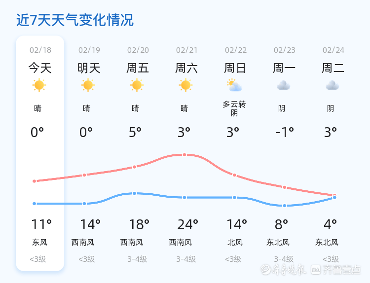 2026年2月18日,农历正月初二,星期三。泰安市迎来晴好天气,气温在0℃到11℃之间,西北风1级,空气湿度为75%,PM2.5指数为94。今天也是二十四节气中的雨水节气。雨水节气标志着冬季寒冷逐渐消退,气温开始回升,降水逐渐增多。市民在享受晴好天气的同时,也需注意保暖,防范乍暖还寒的天气变化。今日泰安各区天气情况稳定,均为晴朗天气,气温差异不大。明天,2月19日,泰安市将继续保持晴朗天气,但气温将有所上升,预计最高气温将达到14℃,最低气温维持在0℃。风向转为西南风,风力仍为<3级。相较于今日,明日的天气更加温暖,适合市民户外活动。未来三天,泰安市天气以晴到多云为主,气温逐渐升高。周五(2月20日)将迎来本轮升温的高峰,最高气温可达18℃,最低气温为5℃,风力有所增强,为西南风3-4级。市民出行时需注意防范大风天气带来的不便。周六(2月21日)气温略有回落,最高气温为24℃,最低气温为3℃。周日(2月22日)天气转为多云转阴,气温在3℃到14℃之间。市民需关注天气变化,适时增减衣物。温馨提示