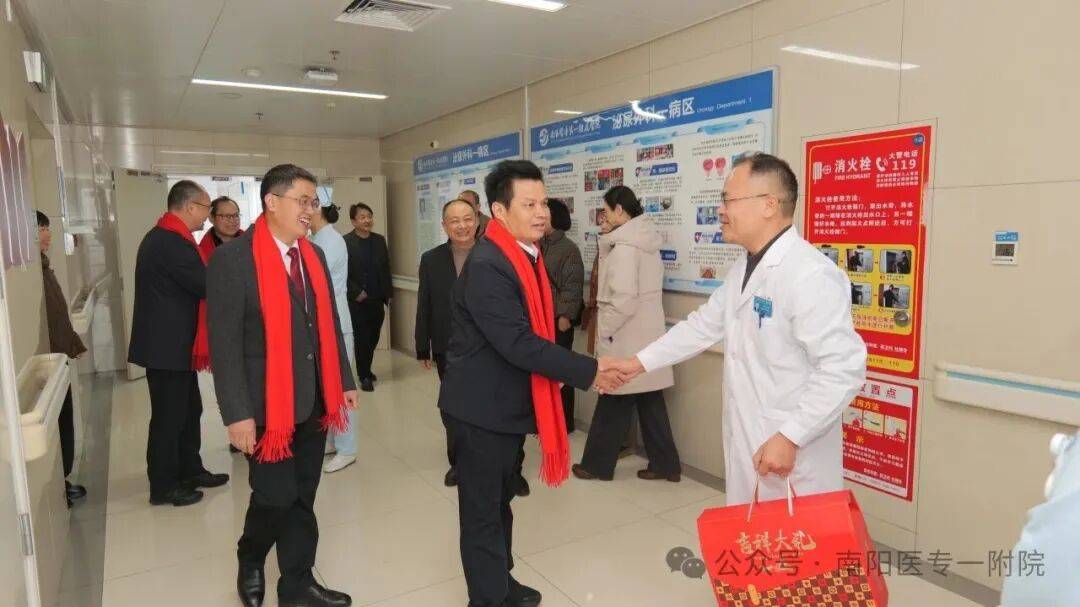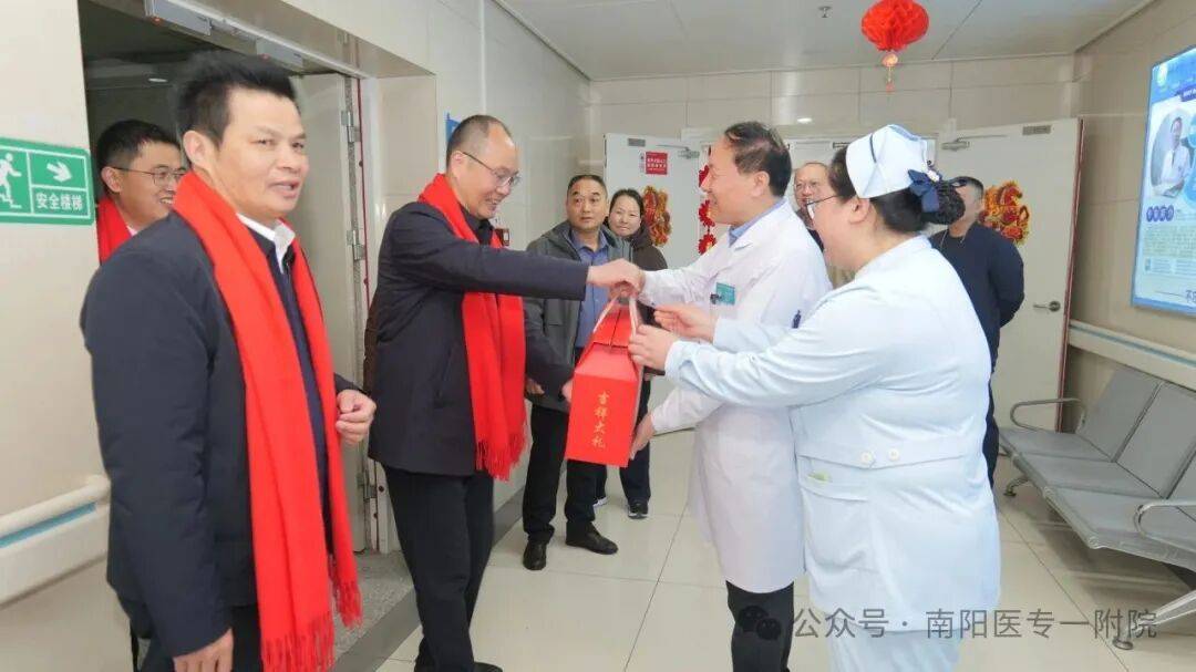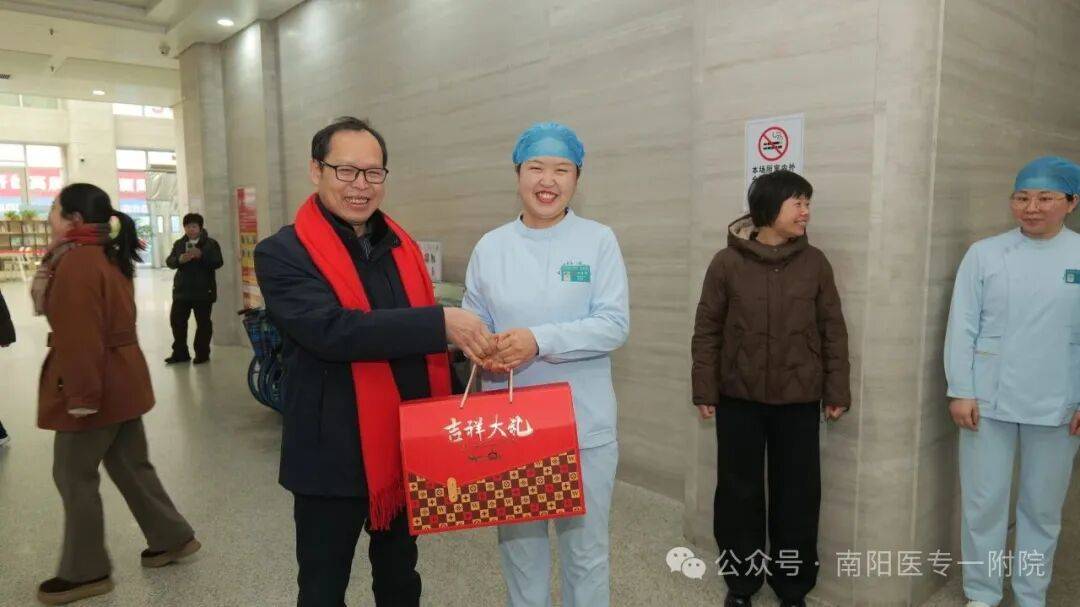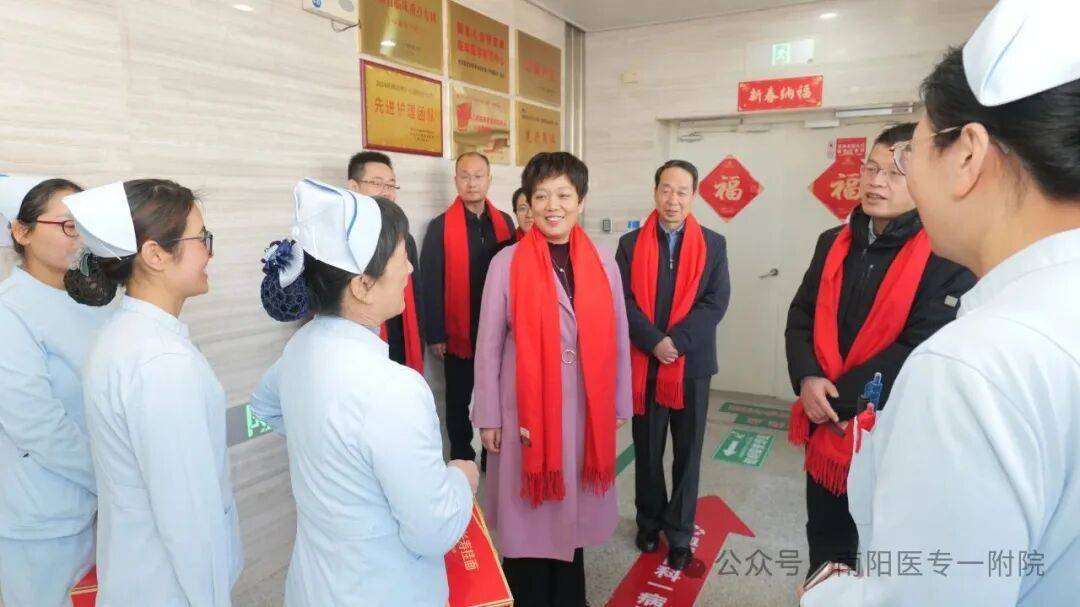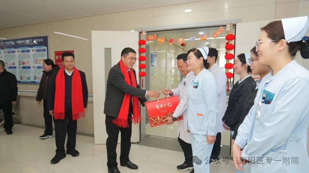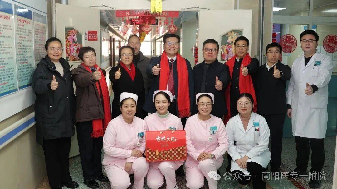 旧岁已展千重锦,新年再进百尺竿。此次新春慰问不仅传递了医院大家庭的温暖,更凝聚了人心,鼓舞了士气。展望2026年,南阳医专一附院全体干部职工将在医专党委和医院党委的坚强领导下,凝心聚力,锐意进取,以更加昂扬的斗志和务实的作风,奋力谱写医院高质量发展的新篇章,为健康南阳建设再立新功。