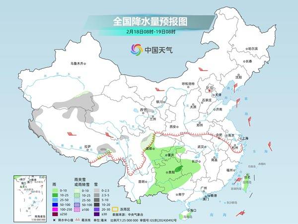 明天,黑龙江西北部、新疆北疆北部、西藏南部和东部、川西高原南部等地部分地区有小到中雪或雨夹雪,其中,新疆北疆阿勒泰和塔城西部高海拔地区、西藏西南部等地部分地区有大雪,局地暴雪(10~16毫米);江南南部、贵州南部、四川盆地西南部、广西北部和西部、云南东部和南部、台湾岛等地部分地区有小雨。