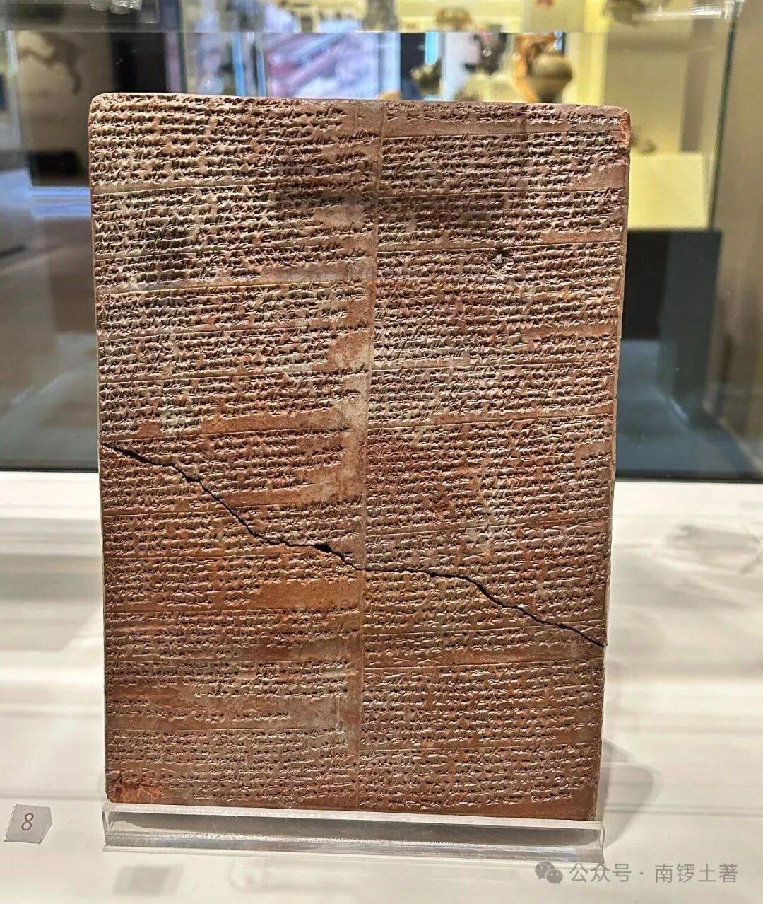 赫梯帝国的象形文字石碑和泥板,出土于土耳其博阿兹柯伊(赫梯首都哈图沙遗址),公元前14~前12世纪(赫梯帝国时期),刻写的是赫梯象形文字(卢维语文字),内容是赫梯王国的行政文书、外交条约或宗教典籍,其中最著名的是“赫梯法典”片段:泥板上的文字记录了对盗窃、伤害、婚姻纠纷的处罚规定(如“盗窃他人奴隶者,需赔偿同等数量的奴隶”),比《汉谟拉比法典》更为宽松,反映了赫梯社会的法律理性。这是研究赫梯文明文字、政治制度与宗教信仰的关键实物资料,也是安纳托利亚地区青铜时代晚期(赫梯帝国)文字与书写文化的代表文物。