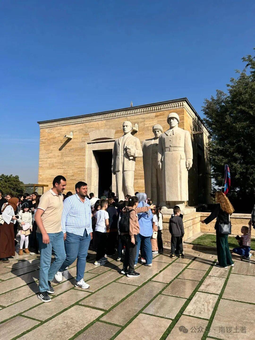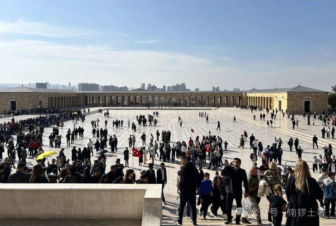 站在纪念堂前的平台上,眼前是纪念广场的回廊,远处是现代化的安卡拉城。高大的旗杆上,土耳其国旗在微风中飘扬,阳光灿烂,广场上的民众或驻足凝视,或轻声缅怀,那份对民族英雄的敬意与对国家历史的珍视,在空气中静静流淌。