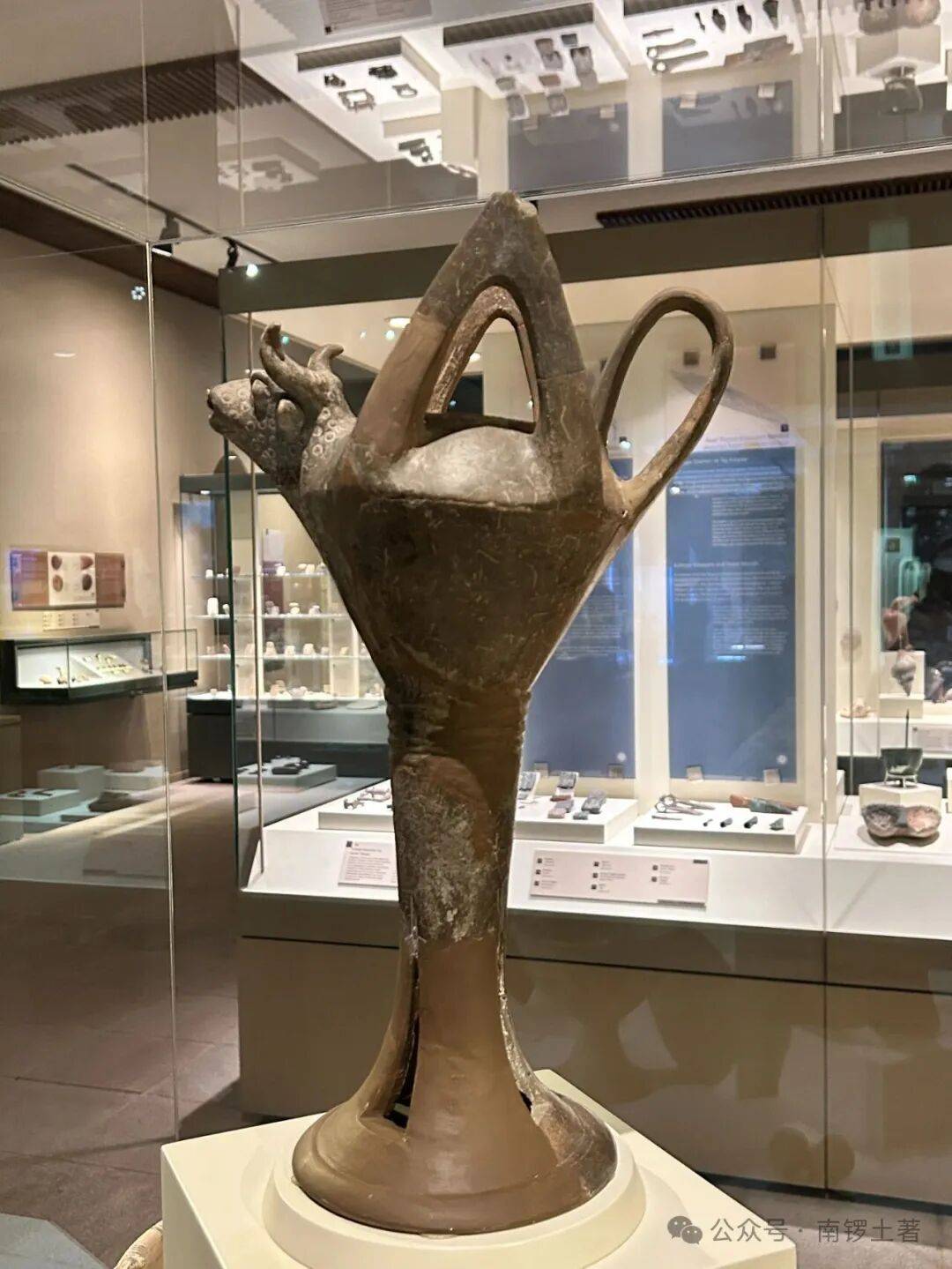 兽首高柄陶壶,黏土材质的礼仪用器,安纳托利亚新石器时代晚期(约公元前6000~前5000年,出土于安纳托利亚地区恰塔霍裕克遗址。壶身是高柄、宽口+双环耳的独特形制,壶口装饰公牛兽首,这也是安纳托利亚新石器时代的典型符号,公牛象征“丰饶、力量”,这类器物并非日常用具,而是祭祀仪式中的“圣器”,用于盛放圣水、谷物等祭品。它反映了当时社会的“动物崇拜”与“仪式文化”,是早期农业定居文明精神生活的见证,也体现了新石器时代安纳托利亚地区的制陶工艺水平。