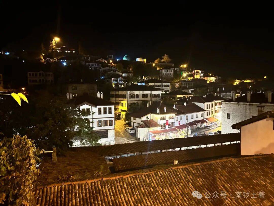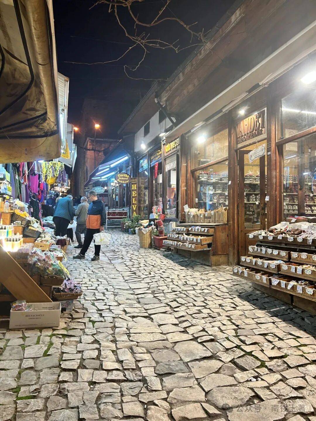 傍晚,老城的路灯已经亮起,不是我们熟悉的现代都市冰冷的白炽灯,而是缀在木廊下的暖黄灯笼,光晕透过雕花玻璃,在青石板上投下细碎的影子,像撒了一把星星。踩着这些“星星”走进主街,两侧的奥斯曼式木屋连成片,暗红色的屋顶覆盖着厚厚的茅草,木质窗棂上缠绕着紫色的三角梅,晚风拂过,花瓣散落,带着淡淡的甜香。
