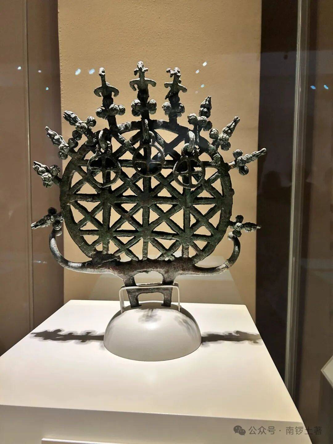 阿拉卡霍裕克(Alacahöyük)青铜太阳盘是青铜时代早期(公元前2500~前2250年)的哈提亚文明文物,礼仪用器,出土于土耳其阿拉卡霍裕克的前赫梯时期王室墓葬,是该遗址出土的13件“太阳盘”之一。造型主体是镂空网格的圆形盘,象征太阳/大地,盘上有太阳十字纹(代表太阳崇拜),边缘装饰鸟、植物、人形/神像,寓意生育、自然丰饶,底部的角状凸起可能关联公牛崇拜,这也是哈提亚文明的重要符号。太阳盘是哈提亚文明(赫梯文化的前身)的宗教象征物,也是安纳托利亚早期青铜时代文明的代表文物之一。