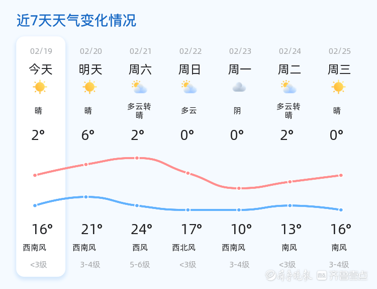 今天是2月19日,正月初三,德州市迎来晴朗天气,气温适宜。全市各区气温在2℃到16℃之间,当前温度为-0.1℃,天气晴朗,南风1级,空气湿度48%,PM2.5指数98,空气质量良好。市民可以放心进行户外活动。