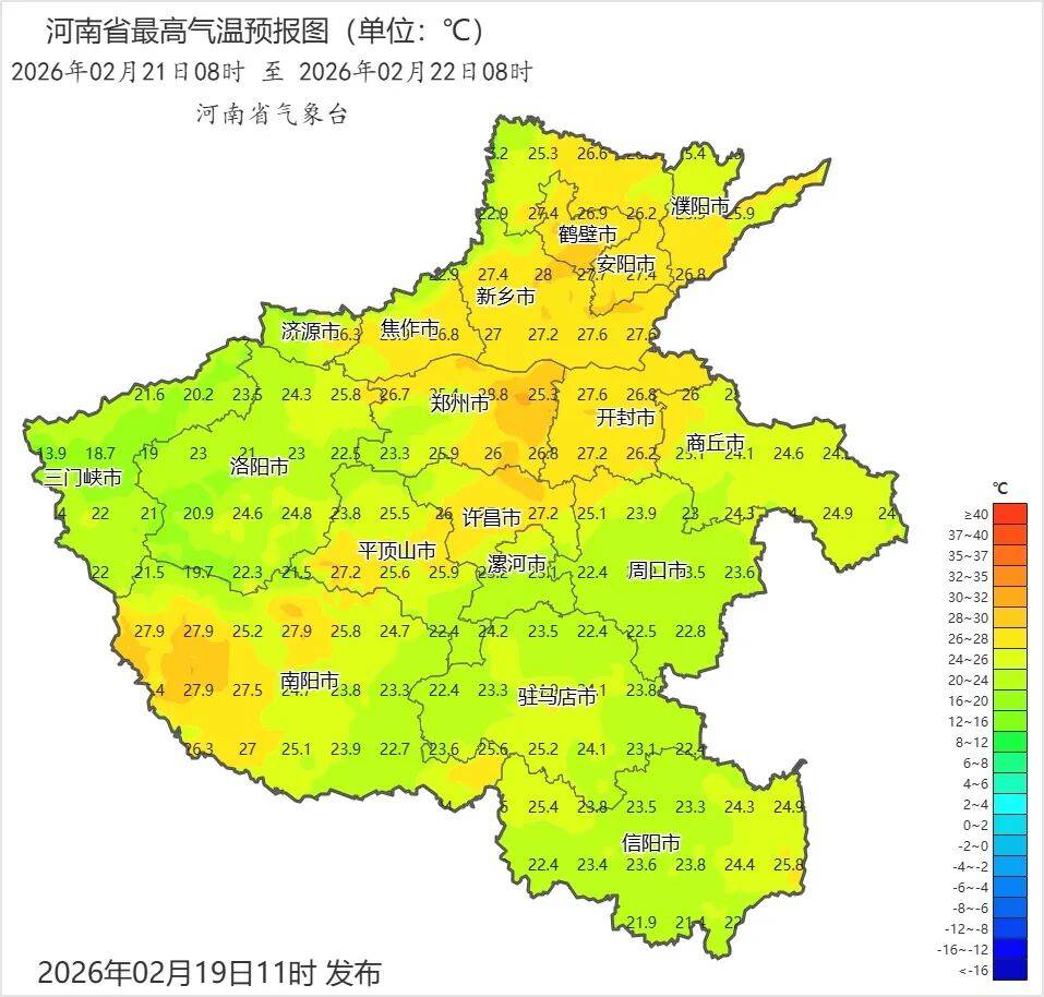 来源:河南省气象台2026年2月19日12时预报