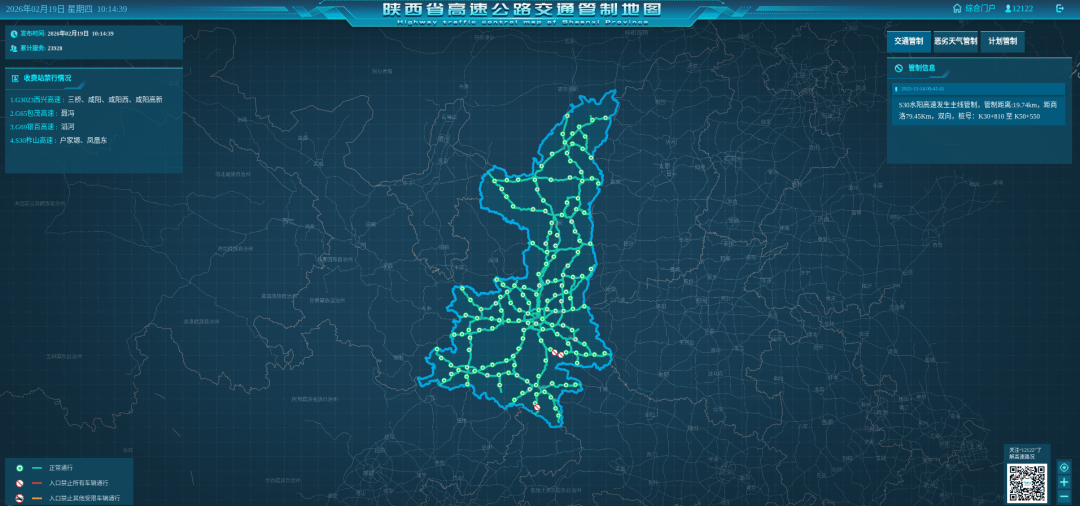 2.连霍高速西渭段潼关方向灞桥立交至临潼服务区之间,灞桥收费站入口通行缓慢。