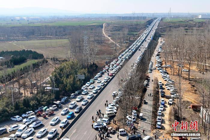 2月17日,农历正月初一,被誉为“微短剧之村”河南登封袁桥古村吸引众多游客前来打卡体验。据了解,自2024年以来,已有超过50部微短剧在此取景拍摄。图为驾车前往袁桥古村打卡的游客。(无人机照片) 刘杨迪 摄