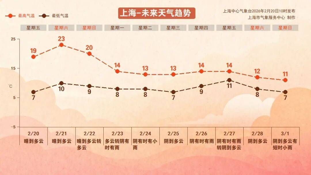在经历连续晴好之后,申城天气即将在新春假期后半程开启“过山车”模式:借势此轮回暖,最高气温有望在2月21日攀升至23℃,但紧随其后的,便是一次冷空气过程。