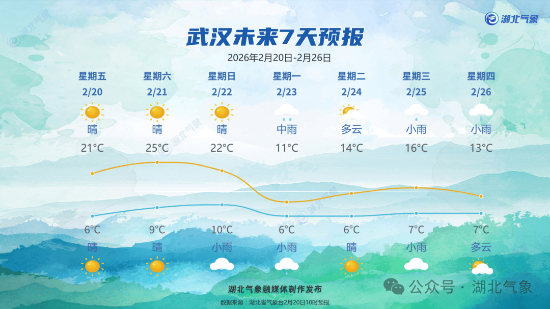 白天全省晴天到多云;夜间鄂东北东部多云到阴天,其他地区多云转阵雨。最高气温19~24℃,最低气温鄂西北1~6℃、其他地区6~12℃,偏北风3到4级、阵风5到6级。