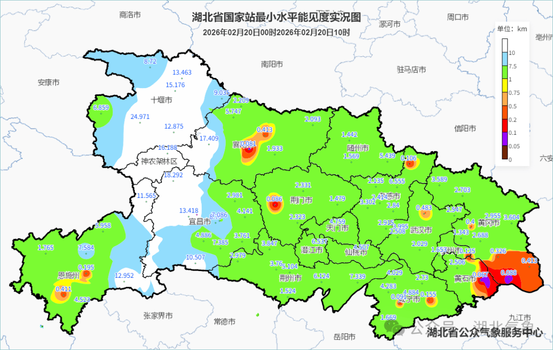 昨天(19日)湖北省由多云转晴,气温持续上升,大部地区最高气温升至15~22℃。今晨北部最低气温0~4℃、南部4~7℃,荆门、武汉、黄冈、黄石、咸宁等地22个乡镇出现浓雾。