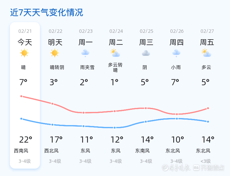预计明天(2月22日),枣庄市天气将由晴转阴,气温有所下降,最低气温为3℃,最高气温为17℃,风力为西北风3-4级。与今天相比,天气状况将有所变化,市民需注意保暖和防风。
