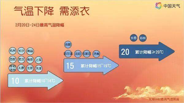 很多地方都是睡一觉起来,仿佛从阳春穿越回了寒冬时节。像哈尔滨、合肥、沈阳、石家庄等地最大降温幅度可达15~19℃,长春、郑州累计降幅更是可超20℃!