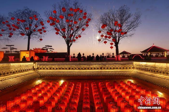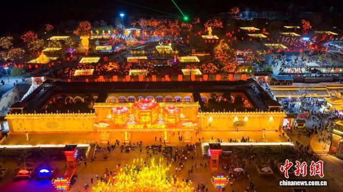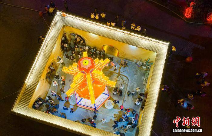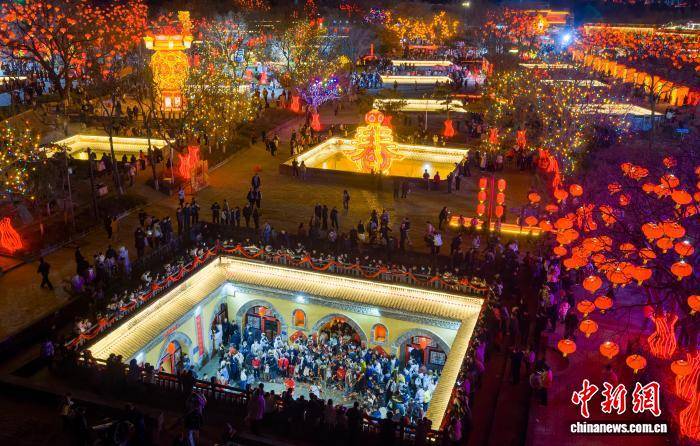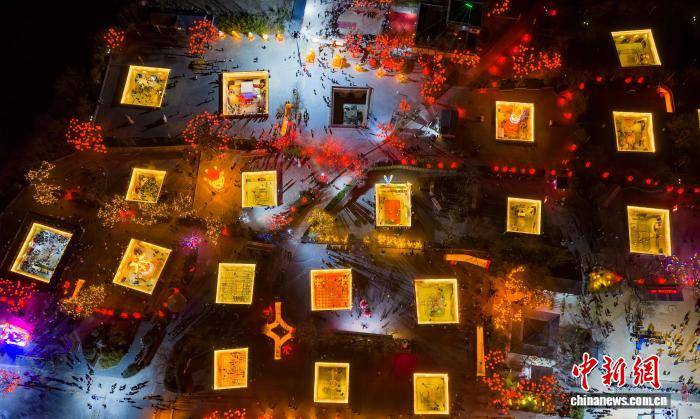 图为多彩花灯点亮陕州地坑院。(无人机照片)孙猛 摄