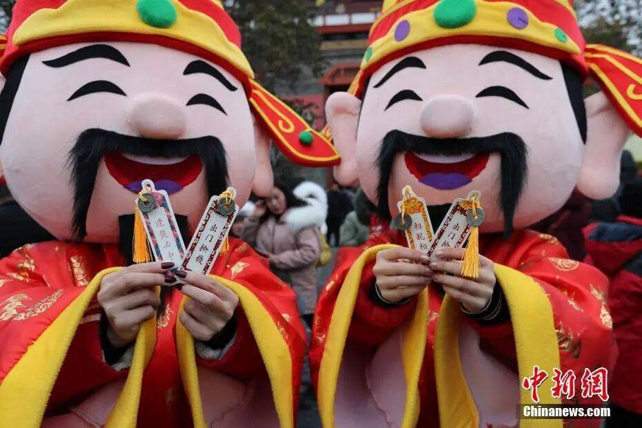 图为民众云集济南千佛山迎“财神”,祈愿新年好运来。 中新社记者 张勇 摄