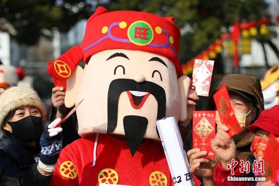 图为江苏南京“财神爷”向民众发放红包。中新社记者 泱波 摄