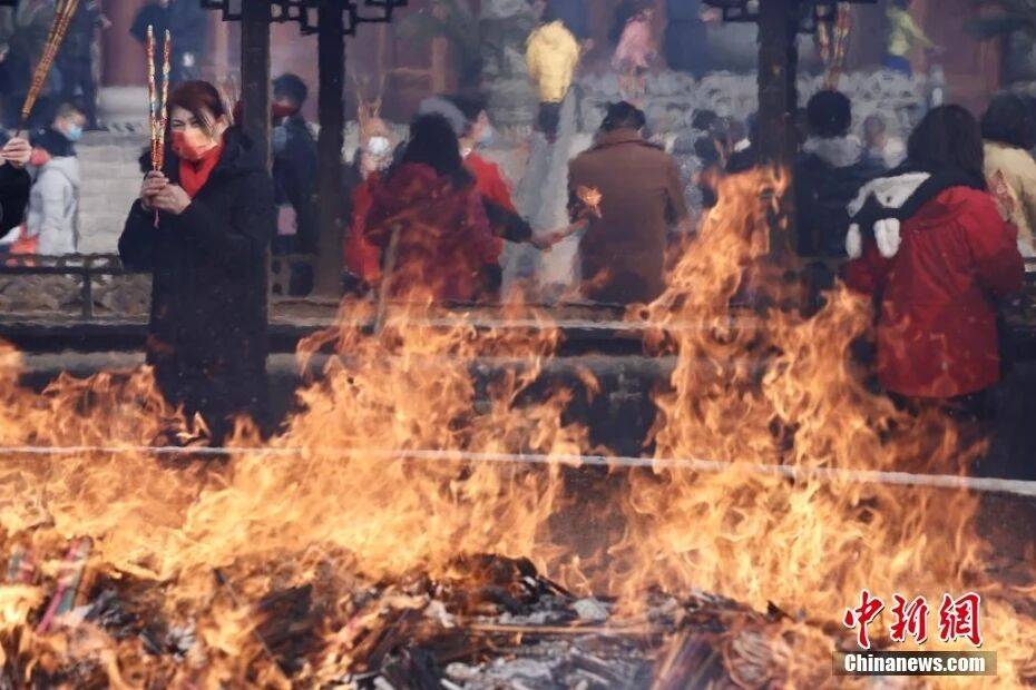 图为在上海财神庙,民众前来烧香祈福“拜财神”。殷立勤 摄