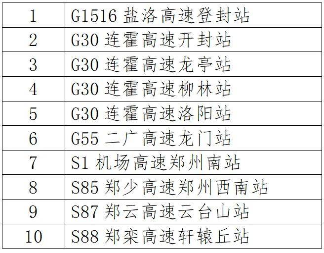 (二)10处易拥堵收费站