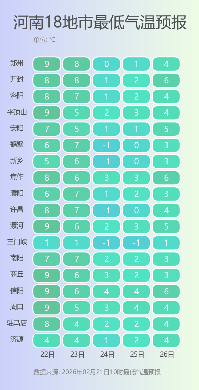 据河南气象消息,今天开始,气温将急转直下,到了23日(初七)大部地区的最高气温将重返个位数,气温降幅可达13到18℃;24日(初八)凌晨大部地区的最低气温将降至0℃左右,其中西部山区达零下4℃到零下2℃,中部局部地区将出现寒潮。冷热转换剧烈,大家一定要及时调整着装,谨防感冒。此外,今夜到明天,随着低涡东移,河南自西向东将迎来一轮大范围雨雪天气。具体来看,我省的南部将出现中雨,东南部局部大雨,西部山区有中到大雪,其他县市则是从小雨逐渐转雨夹雪或小雪。