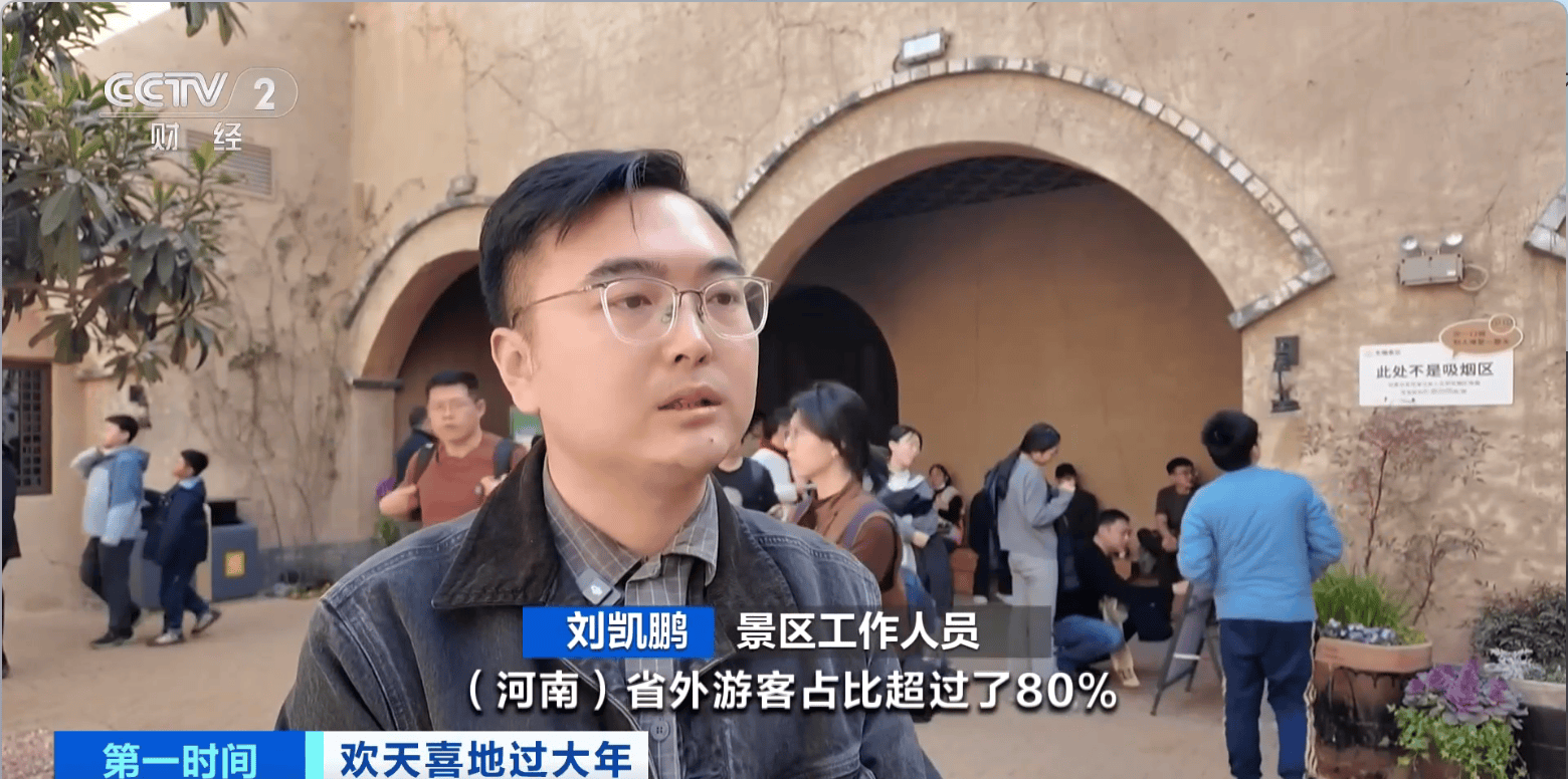 景区工作人员 刘凯鹏:河南省外游客占比超80%,主剧场和小剧场连续多天上座率基本达到100%,面对春节的大客流,我们通过排满剧目的场次、延长营业时间,同时新增了300多个临时岗位来保障在园游客的体验。